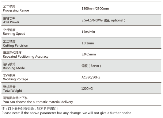 ◆7.5KW恒功率主軸,切面光潔,速度快。可一刀切割20-30mm有機玻璃。
